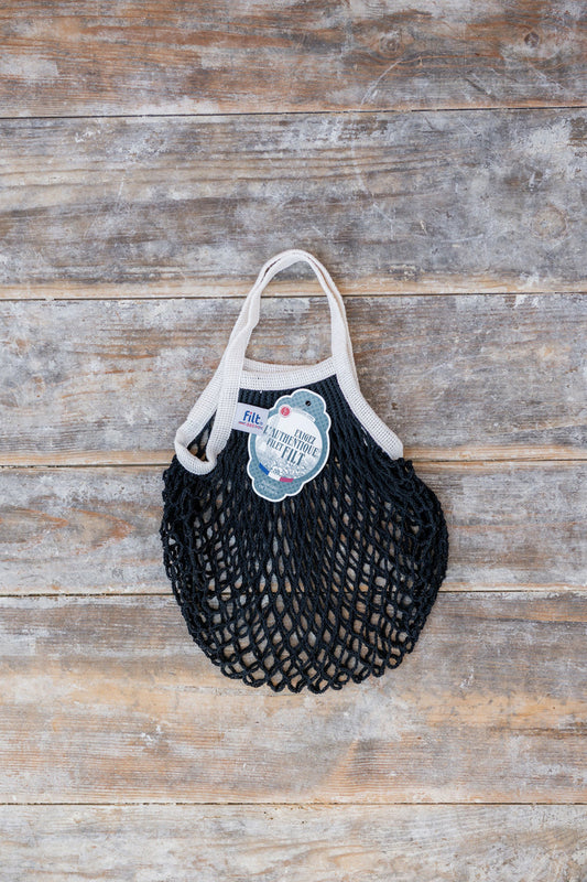 Filt French String Bag Petit Noir poignee Ecru