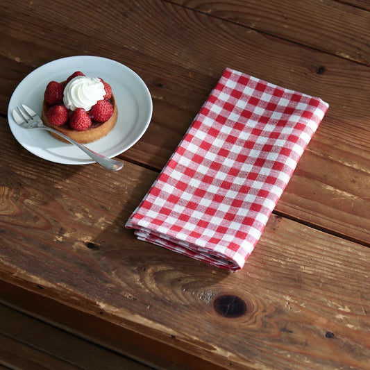 Fog Linen Work Linen Lined Kitchen Cloth White Red