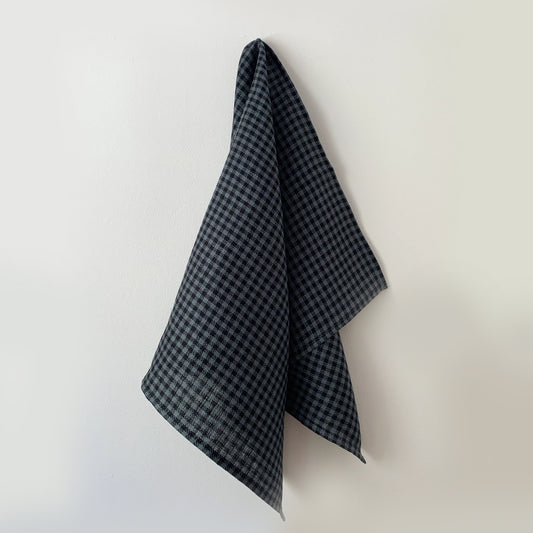 Fog Linen Work Linen Lined Kitchen Cloth White Navy