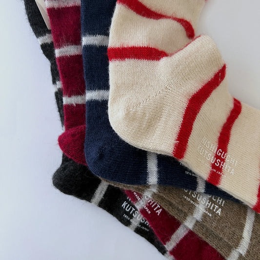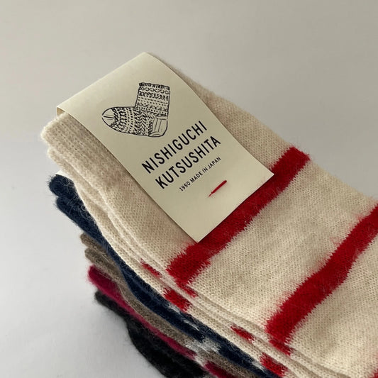 Nishiguchi Kutsushita Oslo Mohair Wool Border Sock Trail Road Small