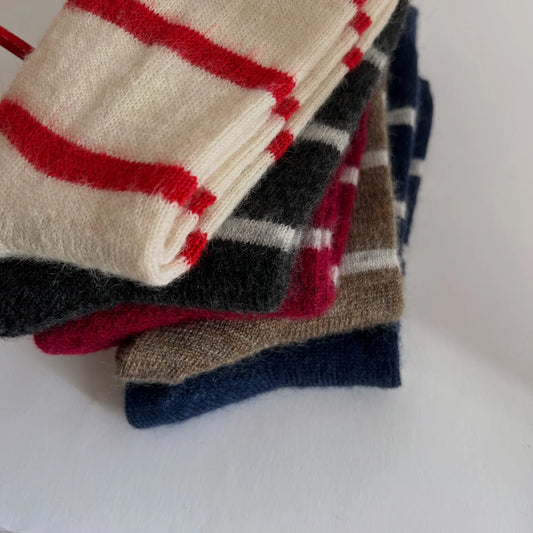 Nishiguchi Kutsushita Oslo Mohair Wool Border Sock Mocha Beige Small
