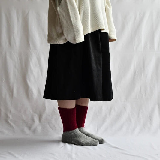 Nishiguchi Kutsushita Oslo Mohair Wool Pile Sock Red Grey Small