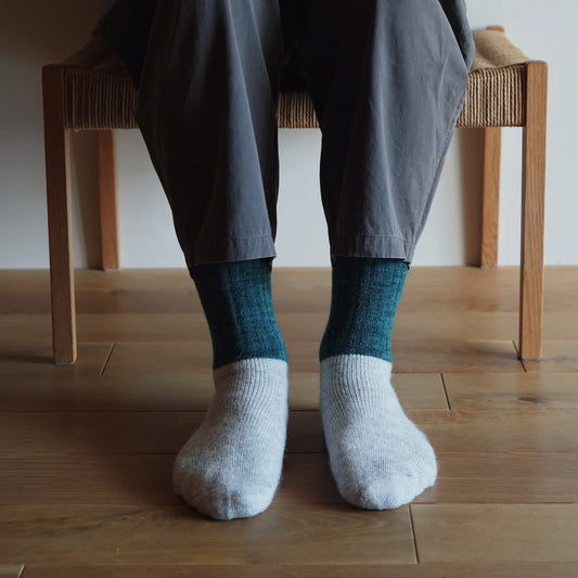 Nishiguchi Kutsushita Oslo Mohair Wool Pile Sock T-Green Small