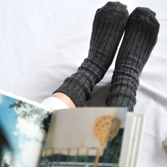 Nishiguchi Kutsushita Praha Cashmere Ribbed Sock Charcoal Medium