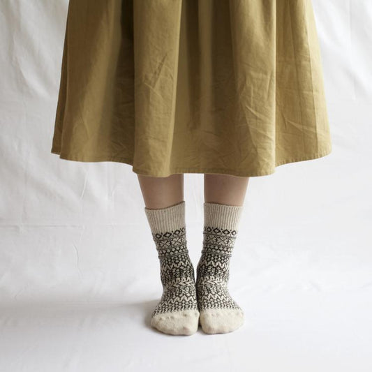 Nishiguchi Kutsushita Oslo Wool Jacquard Sock Grey Vanilla Small