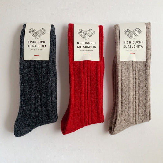 Nishiguchi Kutsushita Praha Alpaca Wool Cable Sock Charcoal Small