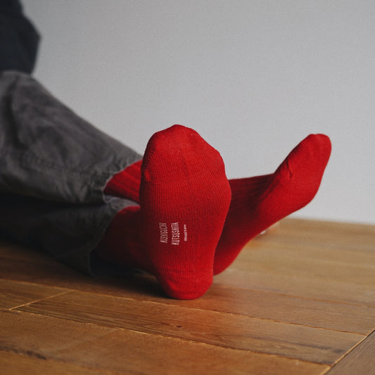 Nishiguchi Kutsushita Praha Cashmere Ribbed Sock Sunset Red Medium