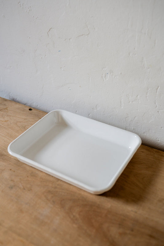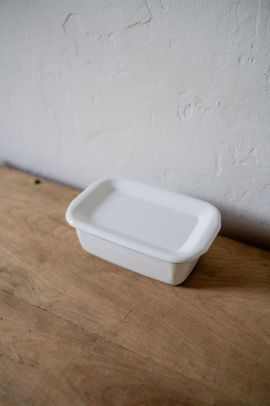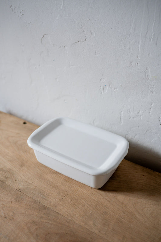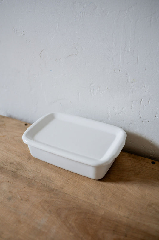 Noda Horo White Enamel Rectangle Deep Food Container Small