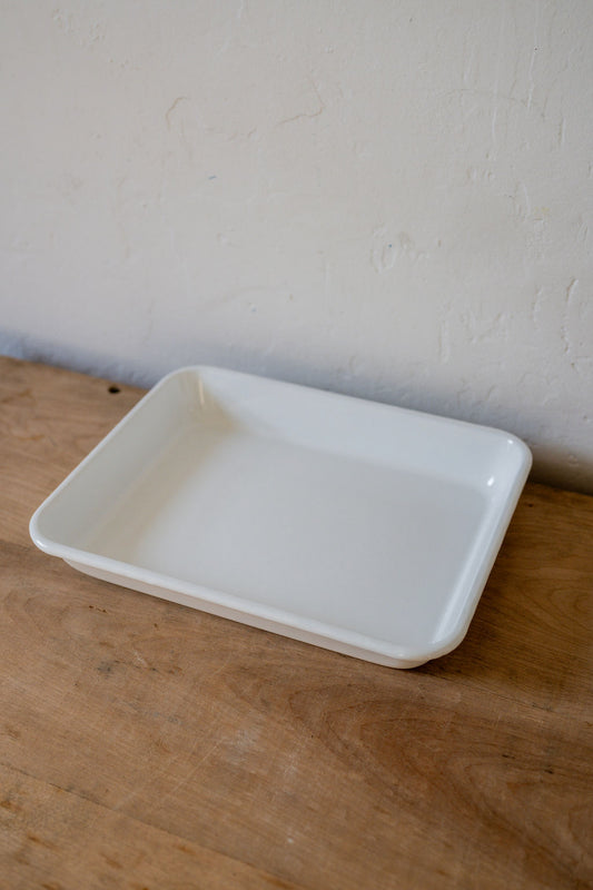 Noda Horo White Enamel Rectangle Deep Food Container Medium