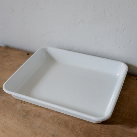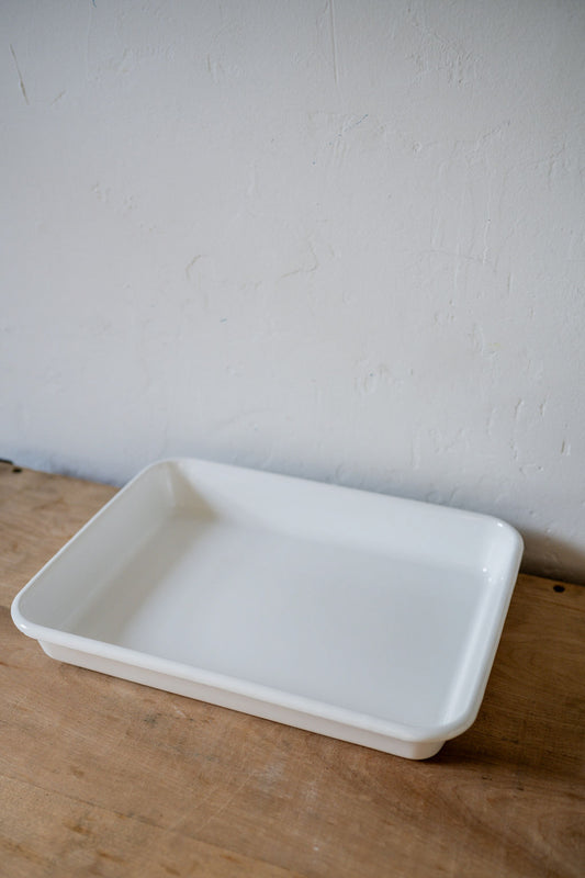 Noda Horo White Enamel Rectangle Deep Food Container Large