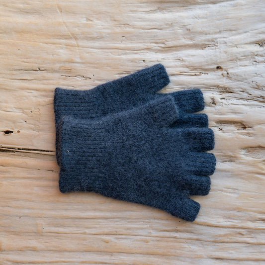 Penelope Durston Short Angora and Lambswool Fingerless Gloves Graphite Grey