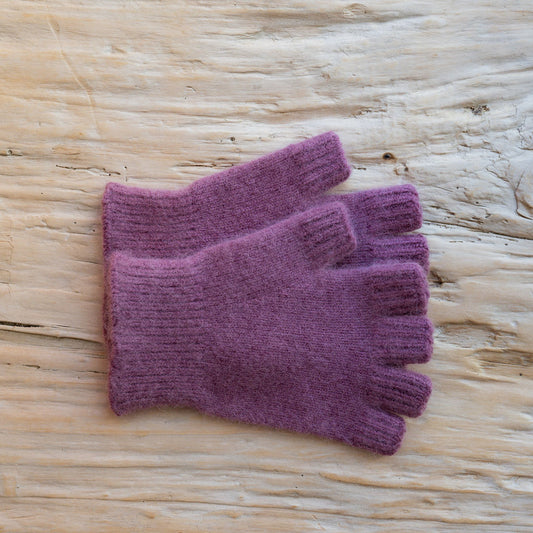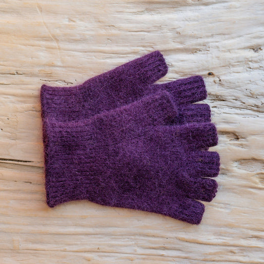 Penelope Durston Short Angora and Lambswool Fingerless Gloves Mulberry