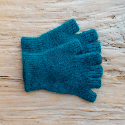 Penelope Durston Short Angora and Lambswool Fingerless Gloves Turquoise