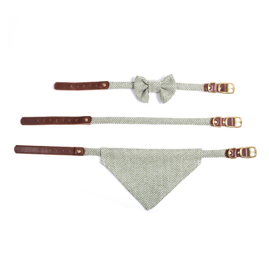 Tweedmill Textiles Rolled Tweed Dog Collar Large 61cm Herringbone Olive