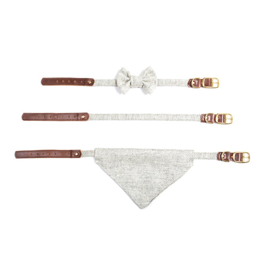 Tweedmill Textiles Rolled Tweed Dog Collar Small 46cm Herringbone Silver Grey
