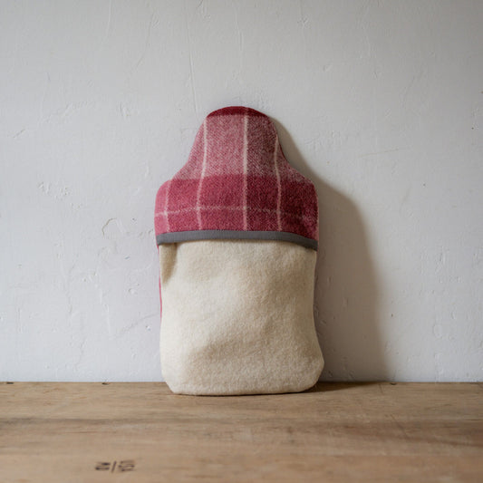 Vintage Wool Blanket Hot Water Bottle Cover Mulberry Check