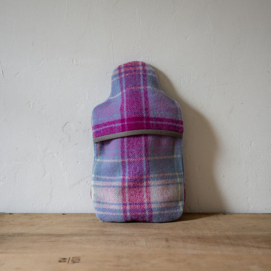 Vintage Wool Blanket Hot Water Bottle Cover Blue Pink Tartan