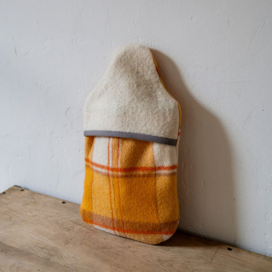 Vintage Wool Blanket Hot Water Bottle Cover Orange Tartan